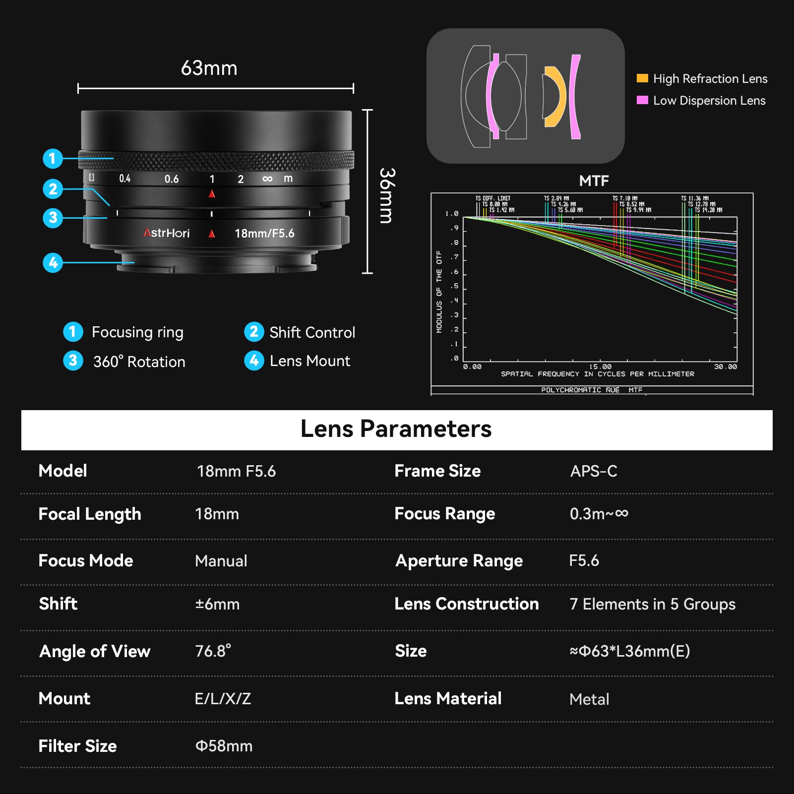 MF 18mm F5.6 APS-C Shift Lens for E/FX/L/Z